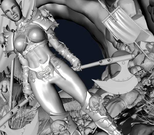 It is very difficult to change anything past this step, so it’s important to get everything as close to perfect as you can here. Significant changes past this stage will incur extra charges. This step consists of polishing, final adjustments or additions such as props or character expressions. Additional lights may be added as well. This is where the image will be prepared for the full size render and Post-production.